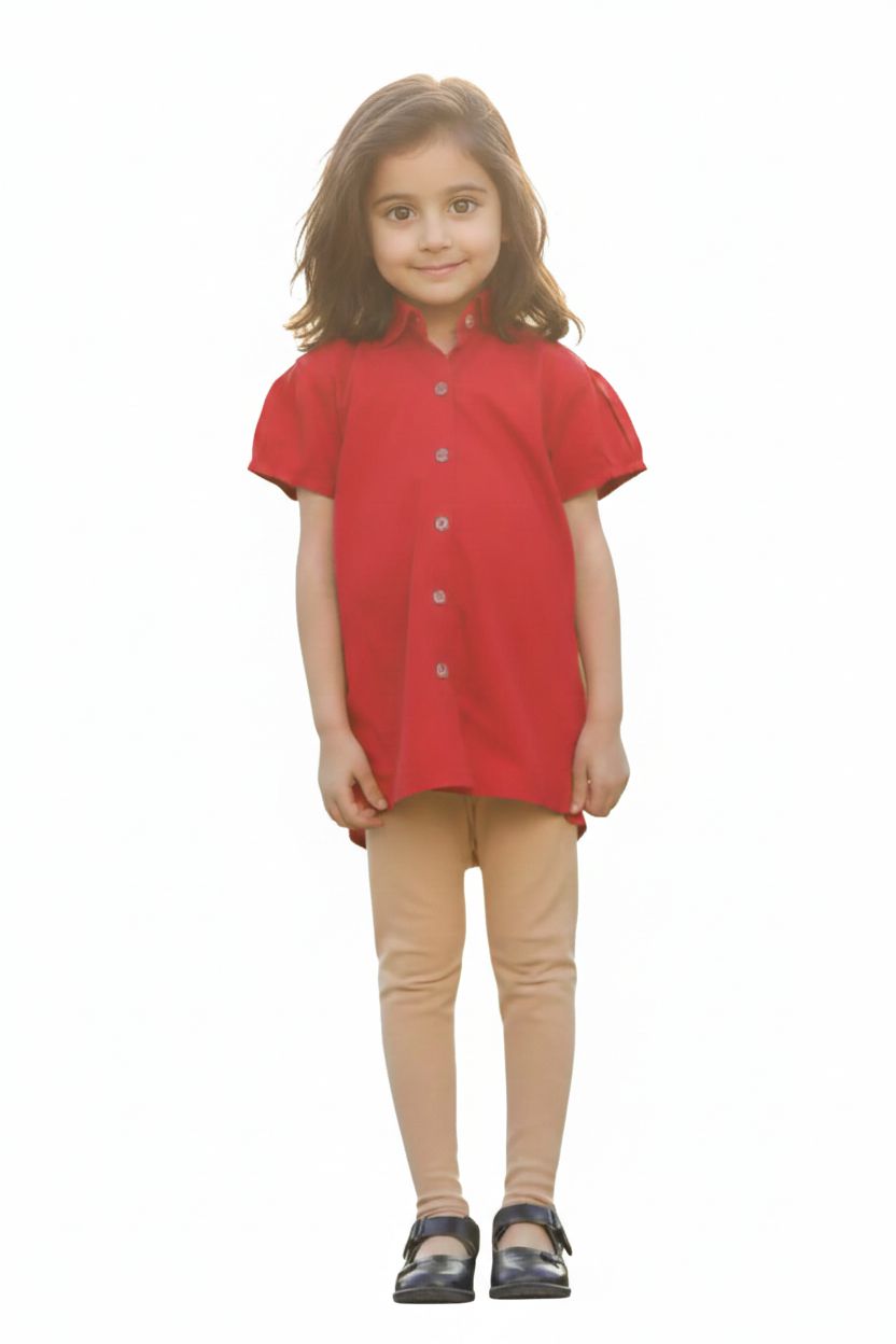 Introduce effortless style to her wardrobe with this Maroon Half-Sleeve Blouse for Girls, designed to offer both elegance and everyday comfort. Crafted with a smart, structured collar and a neat button placket, this blouse features soft front gathers that create a graceful, feminine look. The gentle half sleeves provide ease of movement, making it perfect for school, casual outings, or daily wear. Versatile and timeless, it’s a piece every young girl will love.